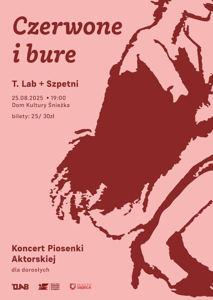 Zapraszamy serdecznie już 25 sierpnia na godz. 19:00 do Domu Kultury „Śnieżka” na Koncert Piosenki Aktorskiej dla dorosłych pt. „Czerwone i bure…” w wykonaniu grupy T.Lab oraz duetu Szpetni.
