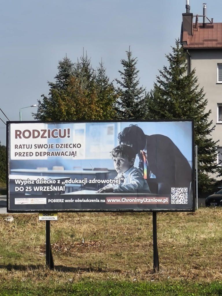 W Straszęcinie, w gminie Żyraków, pojawiły się billboardy z hasłem: „Ratuj swoje dziecko przed deprawacją! Wypisz dziecko z edukacji zdrowotnej do 25 września”. Wielki plakat przedstawiający zaniepokojone dziecko i dorosłego z tęczowym krawatem od razu rzuca się w oczy. Przekaz jest prosty: nowy przedmiot w szkołach to zagrożenie dla najmłodszych.