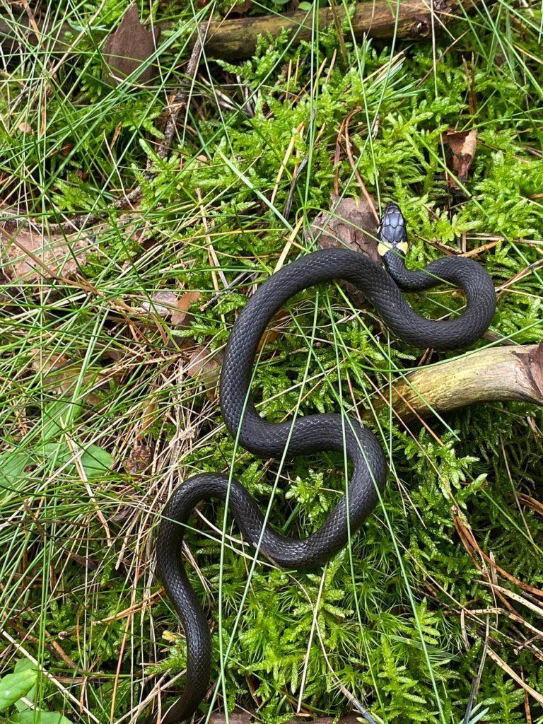 Zaskroniec zwyczajny (Natrix natrix) to najczęściej spotykany wąż w regionie. Uwielbia okolice rzek, stawów i podmokłych łąk. Charakterystyczne żółte plamy za głową pozwalają łatwo go rozpoznać. Choć bywa mylony ze żmiją, jest całkowicie niegroźny i pożyteczny – żywi się głównie płazami, regulując ich populację.