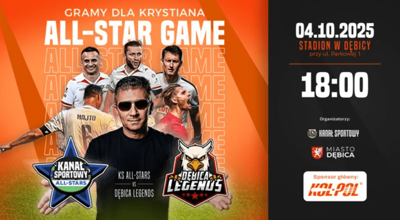 Mateusz Borek zaprasza do rodzinnej Dębicy na wyjątkowe wydarzenie sportowe – charytatywny mecz piłkarski Kanał Sportowy All-Stars – Dębica Legends. Spotkanie odbędzie się w sobotę, 4 października o godzinie 18:00, na stadionie przy ul. Parkowej w Dębicy.