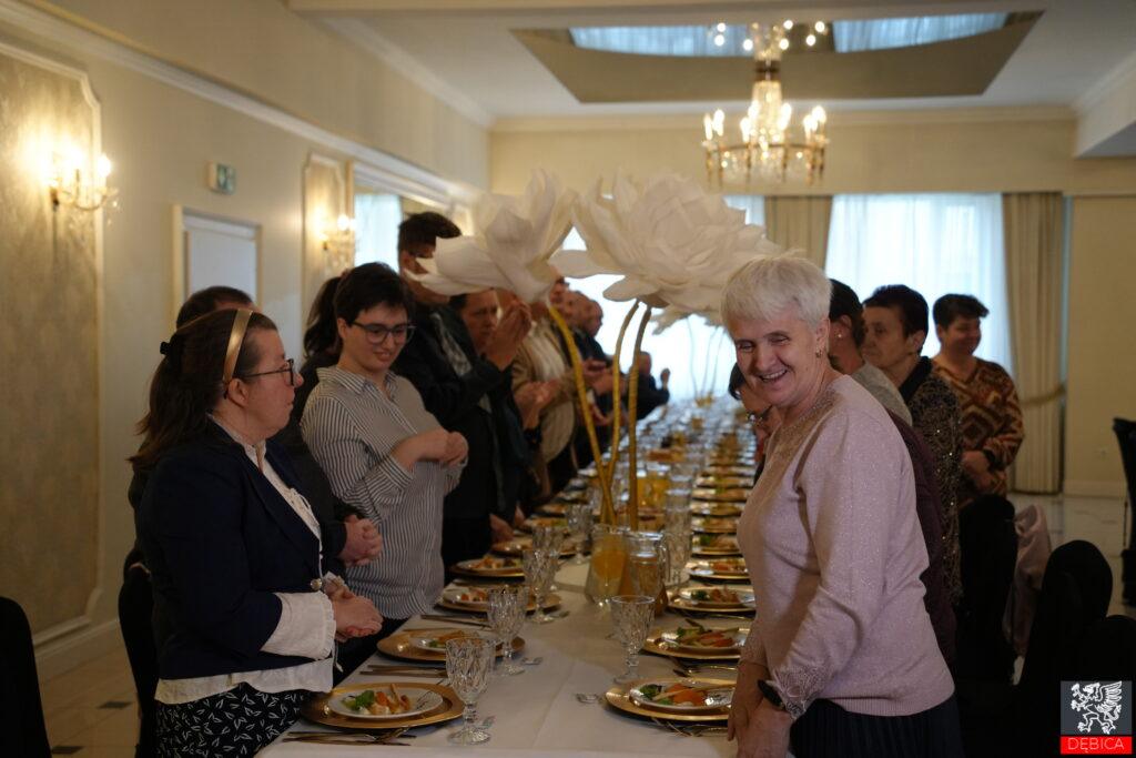 Uroczystość rozpoczęła kierownik ŚDS Marta Skórska, witając zaproszonych gości i podkreślając znaczenie ośrodka dla lokalnej społeczności. Wśród uczestników znaleźli się m.in. byli burmistrzowie Dębicy – Władysław Bielawa, pełniący funkcję w okresie powstania ŚDS, oraz Mariusz Szewczyk, który sprawował urząd w czasie przeniesienia ośrodka do jego obecnej siedziby. Obecna była również Wiceburmistrz Małgorzata Rauch, która w imieniu miasta złożyła kierownik ośrodka gratulacje i wyrazy uznania.