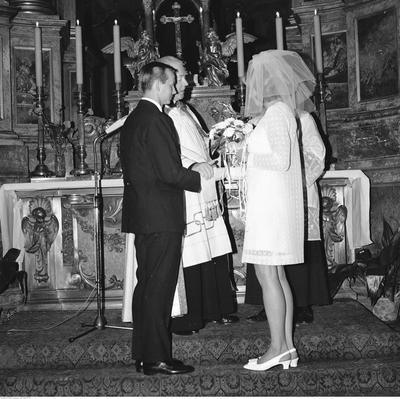 Nie zwlekając ruszyliśmy do tej miejscowości, która na szczęście była oddalona tylko o trzy kilometry. Znaleźliśmy księdza, który faktycznie akurat miał lekcję religii. Kaziu poprosił go na zewnątrz i wyjaśnił z czym przyjechał. Ksiądz bez wahania lekcję religii przerwał, wsiadł na swoją wueskę i na pełnym gazie ruszył w kierunku kościoła. Tylko kurz wzbijał na drodze. My za nim. W parę minut byliśmy na miejscu. Ksiądz błyskawicznie przebrał się w szaty liturgiczne i stanął przy ołtarzu. Przy pustym kościele udzielił młodym ślubu, a ja wraz z siostrą młodej byliśmy pierwszymi drużbami. Ślub też trwał krótko, bo zaledwie piętnaście minut. Nie było Mszy Świętej, tylko sam sakrament. Oficjalnie przed Bogiem i urzędem młodzi byli już małżeństwem i dziecko mogło się już spokojnie rodzić. Po sakramencie małżeństwa panna młoda poczuła się na tyle dobrze, że postanowiliśmy wrócić do jej domu, gdzie zostali goście i rodzice, w tym wciąż rozgniewany na pana młodego ojciec. Jak się dowiedział od nas, że już po ślubie cywilnym i kościelnym też, to omal nie wyszedł z siebie.