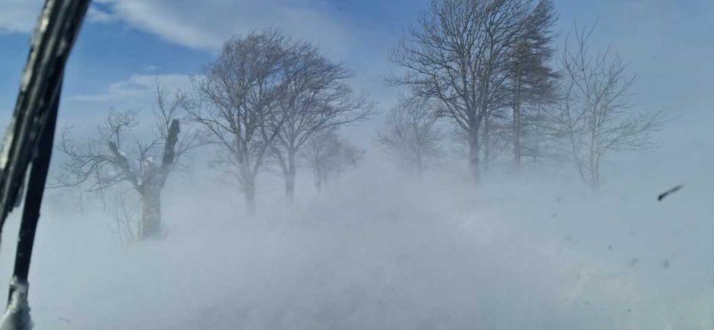 Najpierw policjanci ruszyli do Pielgrzymki, gdzie czekały na nich zasypane samochody. Wiatr był tak silny, że funkcjonariusze mieli problemy, by w ogóle utrzymać równowagę. Na pomoc stróżom prawa ruszył mieszkaniec Samoklęsk, który własnym terenowym autem zabrał jednego z policjantów i razem przedzierali się przez białą ścianę.