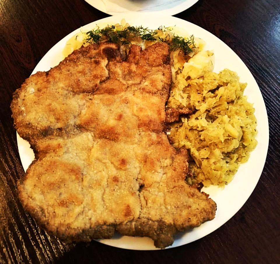 • Schabowy + ziemniaki + kapusta zasmażana – 22 zł