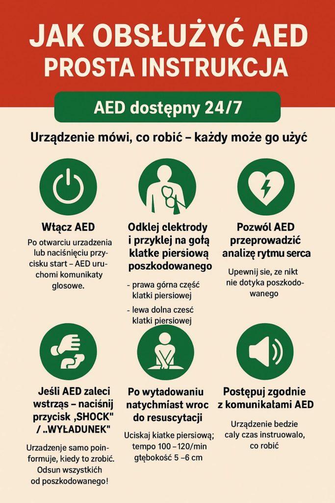 AED jest w pełni intuicyjny i przystosowany do obsługi przez każdą osobę – nawet bez specjalistycznego przeszkolenia. W sytuacjach zagrożenia liczą się sekundy, a szybki dostęp do sprzętu ratującego życie znacząco zwiększa szanse przeżycia poszkodowanego.