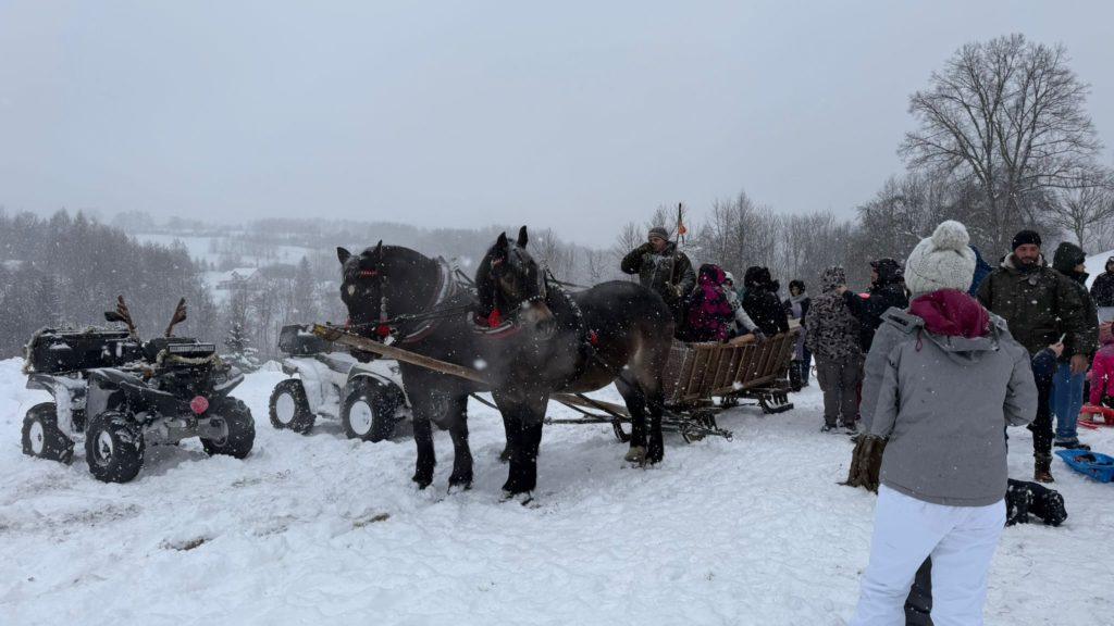 Wielką atrakcją okazały się również konie i przejażdżki, które przywołały ducha dawnych, zimowych tradycji. Ognisko, ciepło płomieni i wspólne rozmowy dopełniły obrazu idealnego dnia spędzonego na świeżym powietrzu.