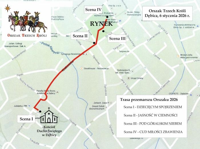 Orszak rozpocznie się o godzinie 12:00 mszą świętą w Kościele pw. Ducha Świętego w Dębicy, po której uczestnicy wyruszą ulicą Krakowską na dębicki Rynek. Wspólnemu przejściu towarzyszyć będą kolędy i pastorałki, a jego celem będzie oddanie pokłonu nowonarodzonemu Chrystusowi.